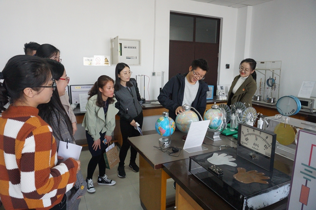 座谈会结束后,我院2015级博士生党员们陪同朗悦学校教师代表参观了物理实验中心,展示了以“探索 科技 互动”为主题的科普实验,主要包括力学演示实验室、电磁学演示实验室、光学演示实验室。朗悦学校教师党员代表也进行了现场体验,感受物理学科的奇幻魅力。