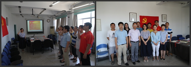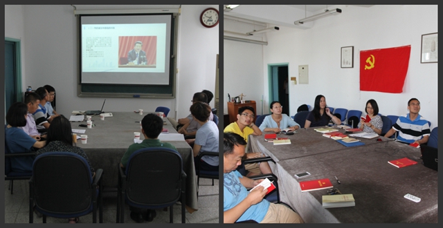 随后,播放了“两题一做”系列学习视频,从党支部工作的角度重新解读了“两学一做”学习教育的重大意义,梳理了推进管党治党工作向基层延伸的重要举措和目前的工作难点。然后集体学习了《中国共产党党章》、《习近平总书记系列重要讲话读本》。紧接着,韩俊峰老师作为示范,在线参加了由工业和信息化部党风廉政建设领导小组所组织的“党章党规在我心中—中央国家机关党章党规知识测试及竞赛活动”,通过竞赛答题的方式帮助支部党员更加深入地学习党章党规。与会的党员通过此次的党支部学习,分享了各自“两学一做”的学习经验,并汇报了自身的思想、工作情况。