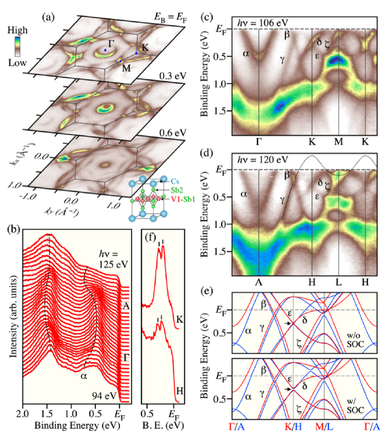 Flat bands, saddle points and Dirac points with linear dispersion relation are usually formed in Kagome structural materials. In order to get a comprehensive and in-depth understanding of the band structure of this system, Prof. Zhiwei Wang collaborated with T. Sato's group from Tohoku University, performed the electronic band structure and its manipulation of CsV3Sb5 by angle-resolved photoelectron spectroscopy (ARPES).