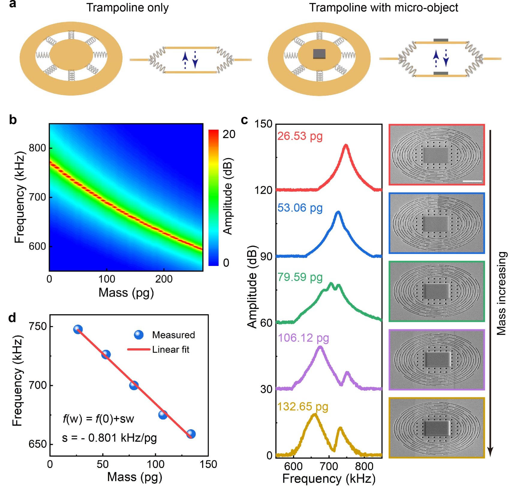 图3. 基于超弹性微网结构的超灵敏微小物体质量传感。
