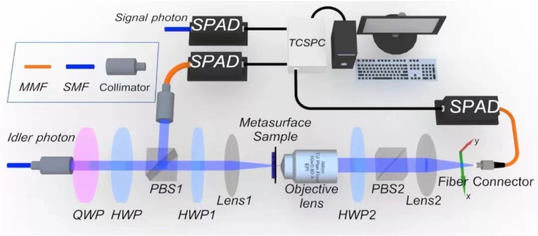 图1 使用量子光源和扫描探测的超表面全息实验装置图