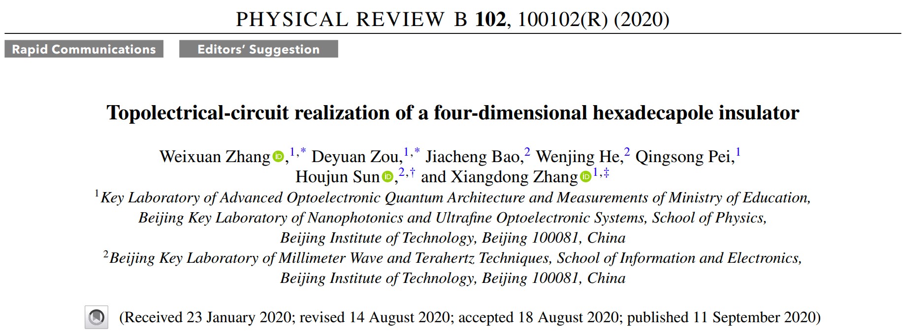 我院在拓扑电路和高阶拓扑态研究方面取得重要进展