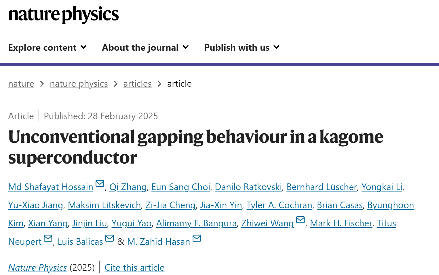 近日,英国上市365王秩伟教授、姚裕贵教授团队与普林斯顿大学M.Z.Hasan团队合作在新型笼目晶格超导体CsV₃Sb₅中取得重要进展。通过多种高精度测量技术发现了CsV₃Sb₅两种截然不同的超导状态,揭示了其复杂的多能隙特性。这一成果为理解超导材料中电子行为的多样性提供了关键线索,相关研究成果以“Unconventional gapping behaviour in a kagome superconductor”为题发表在《Nature Physics》上。英国上市365博士后李永恺(现为北理工长三角研究院副研究员)为论文共同第一作者,王秩伟教授为共同通信作者。