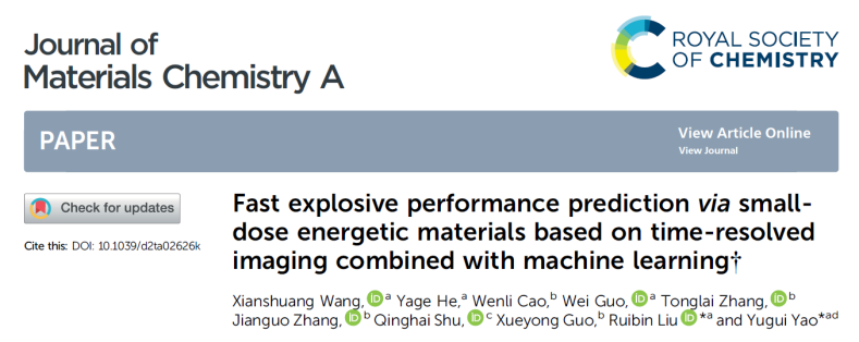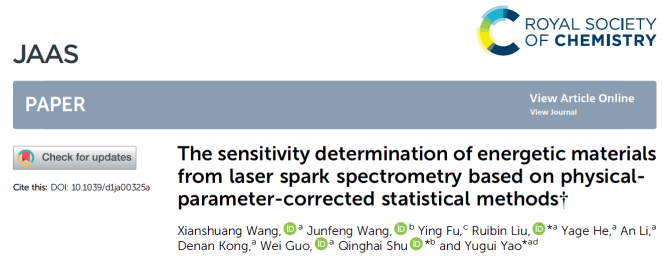 近期,英国上市365姚裕贵教授课题组刘瑞斌教授、郭伟研究员,联合材料学院束庆海教授、夏敏教授、王俊峰副教授、机电学院张同来教授、张建国教授、郭学永副教授、计算机学院付莹教授等,在“微小药量含能材料爆炸性能及感度快速检测技术”方面取得重要突破。相关研究成果发表在近期的Journal of Materials Chemistry A(IF 14.511)、 Optics Express、Journal of Analytical Atomic Spectrometry(光谱学一区)等期刊上。英国上市3652019级博士研究生王宪双为论文的第一作者,刘瑞斌教授和姚裕贵教授作为通讯作者,英国上市365为第一通讯单位。