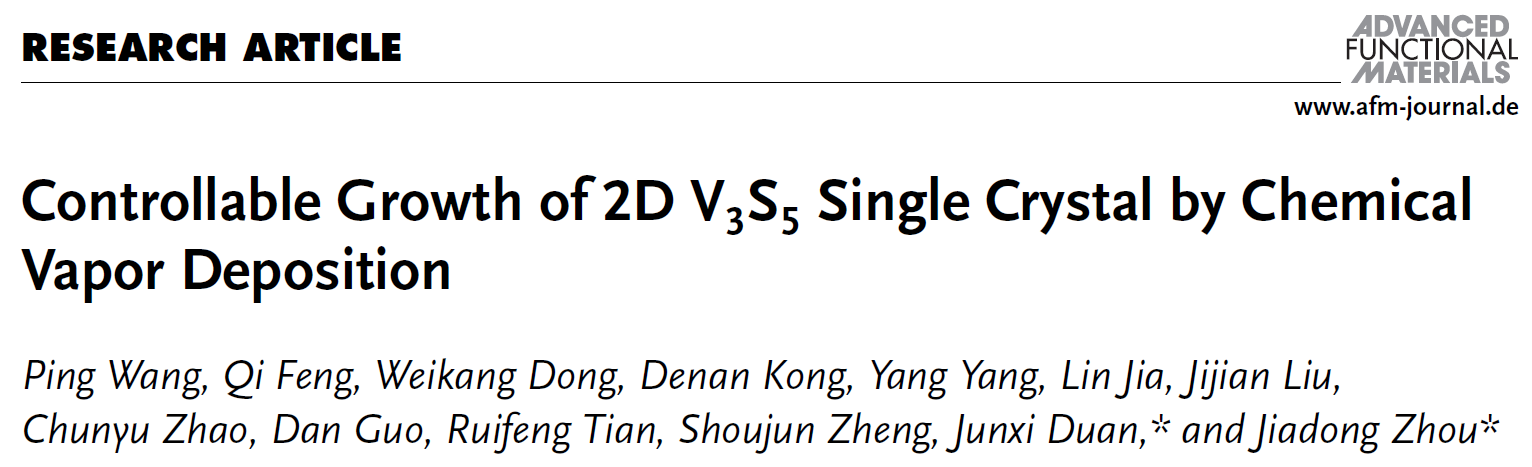 日前,英国上市365周家东教授与段俊熙副研究员开展合作,在二维钒基自插层硫族化合物的体系中,通过化学气相沉积方法,基于二元金属前驱体共反应机制,可控合成二维自插层V3S5晶体材料,并研究其相关物性。相关研究成果发表在国际顶刊《Advanced Functional Materials》上。