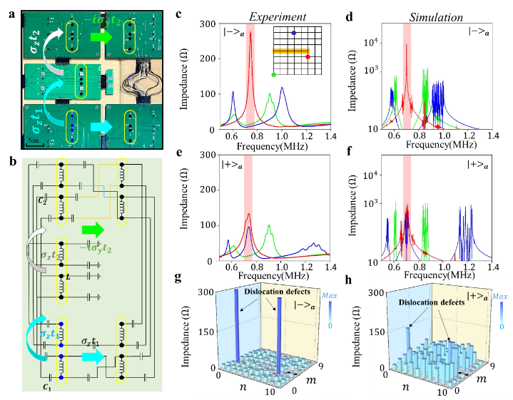 图4. 位错非阿贝尔拓扑连续谱束缚态电路实验结果