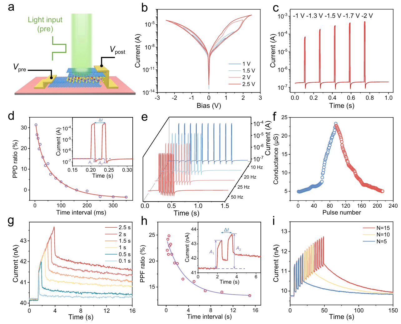 图4. 基于铁电CuVP2S6突触器件的电子特性与光电特性。