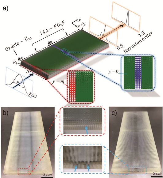 图1 (a)理论设计可执行量子搜索算法的微波超材料芯片。(b)和(c)3D打印制作的可执行量子搜索算法的超材料芯片