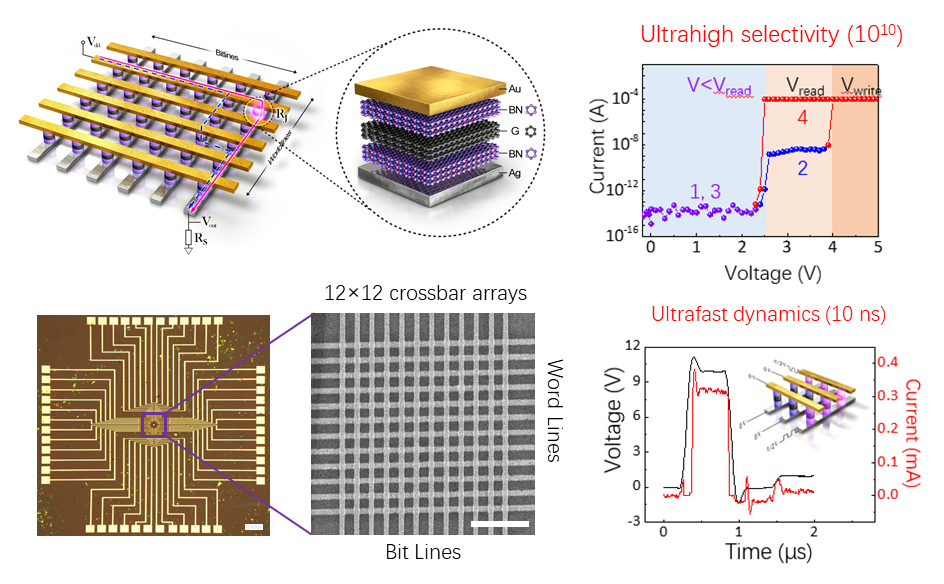 (9) Linfeng Sun#, Yishu Zhang#, Gyeongtak Han, Geunwoo Hwang, Jinbao Jiang, Bomin Joo, Kenji Watanable, Takashi Taniguchi, Young Min Kim, Woo Jong Yu, Bai Sun Long, Rong Zhao*, Heejun Yang*, Self-selective van der Waals hetero-structures for large scale memory array, Nature Communications, 2019, 10, 3161.