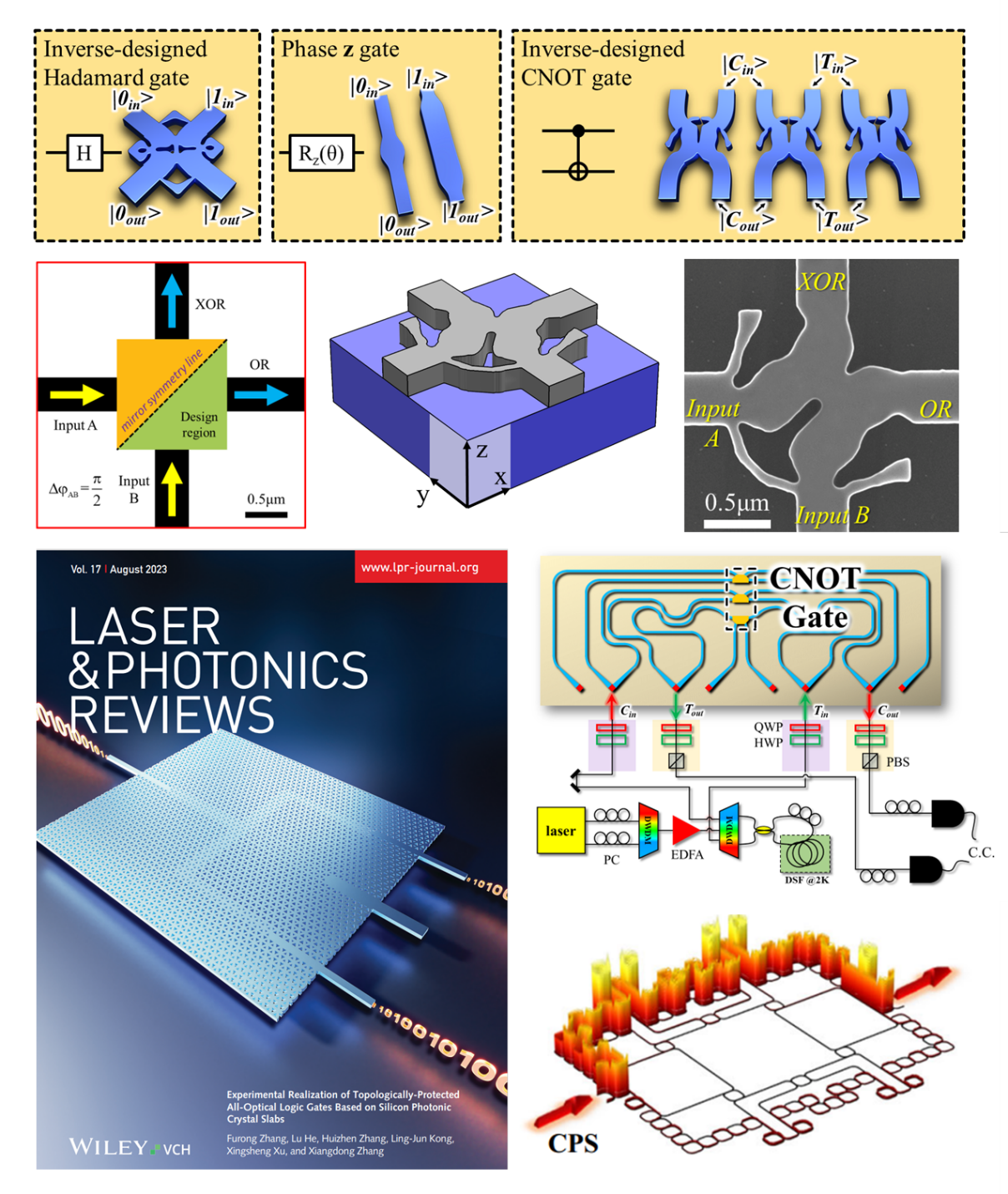 (1)基于拓扑优化方法,首次设计并实验实现了超紧凑的量子逻辑门[Science Advances 9, eadg6685 (2023)]。这是目前已报道的世界上最小的光量子逻辑门。