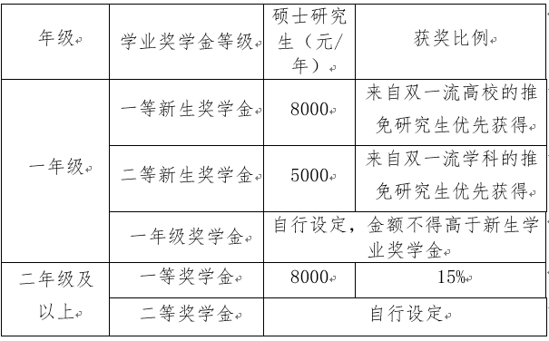 硕士研究生学业奖学金等级与金额设定标准