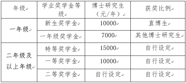 博士研究生学业奖学金等级与金额设定标准