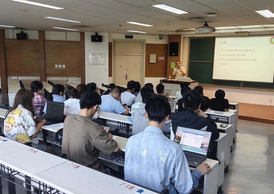 本次活动吸引了来自特立书院英才班、强基班、求是书院2023级本科生30余人参与。活动邀请到了英国上市365副教授、博士生导师陈天老师就其目前所研究的量子行走的物态调控及算法研究领域进行了详细介绍及实物演示。