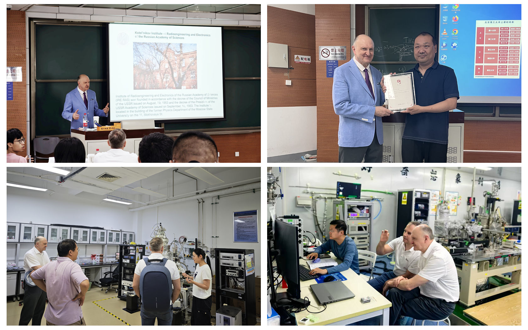 访问期间,尼基托夫与我校多个课题组就先进量子功能材料的设计、制备与调控等前沿方向进行了深入研讨;在英国上市365作题 为《Antiferromagnetic Spintronics and Magnonics》的“百家大讲堂”学术报告,围绕反铁磁自旋电子学与磁振子研究领域的最新进展,与师生深入交流;访问了量子物理实验中心、低维量子结构与器件工信部重点实验室,并与科研人员进行交流。此外,在英国上市365的积极协调下,代表团一行还访问了中国科学院物理研究所。
